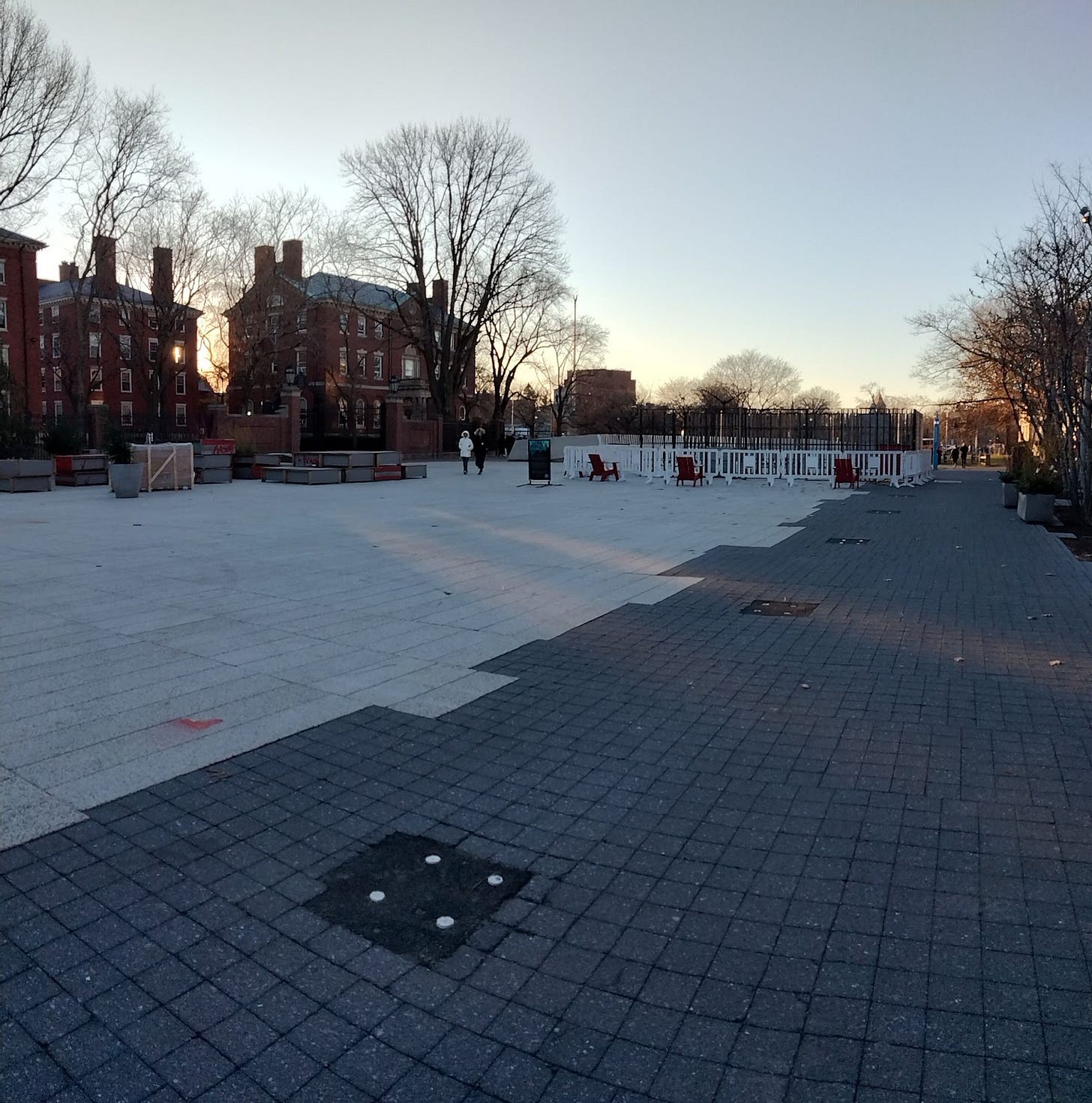 Noticing the subtle changes in our internal and external environments invites awareness. In this photo from our Dec 13th meetup, the sun hangs low behind Harvard buildings near the museum after meditation.